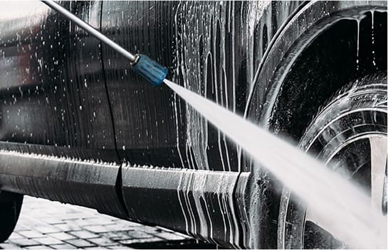 ご家庭用と違って「温水」を使用します。冷水に比べて浸透力が高くより高い洗浄力を実現することができています。