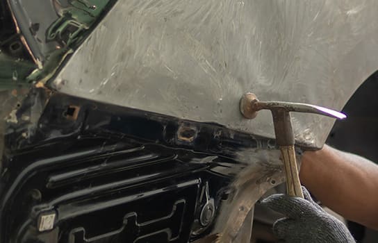 車に出来てしまった傷・ヘコミを、裏から叩いたり、引っ張ったり削ったりして形を整え、最後に塗装して直す事を板金塗装と言います。